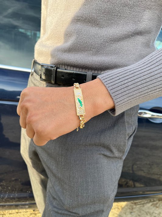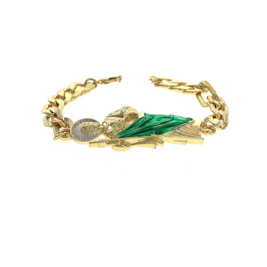 San Judas Tadeo With Green Robe Chain (White Stones)