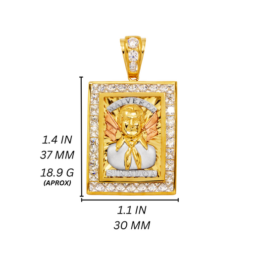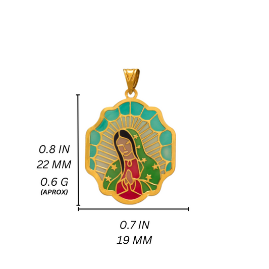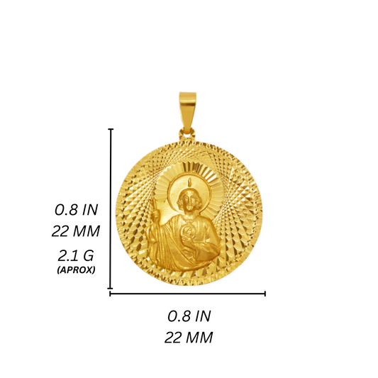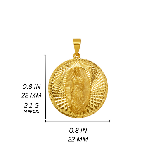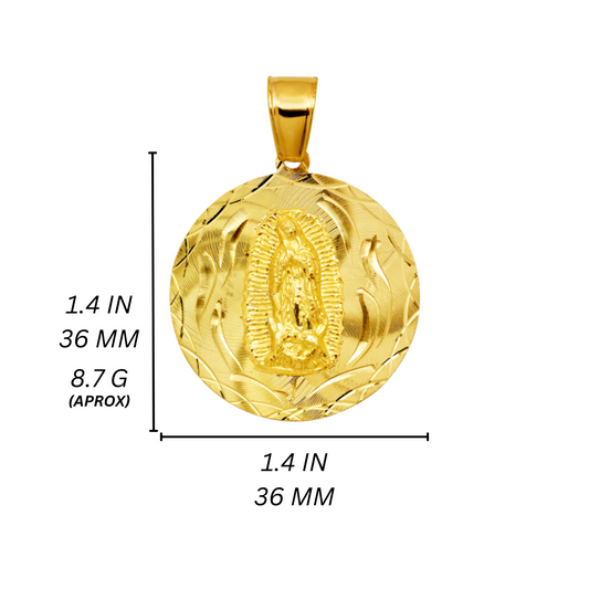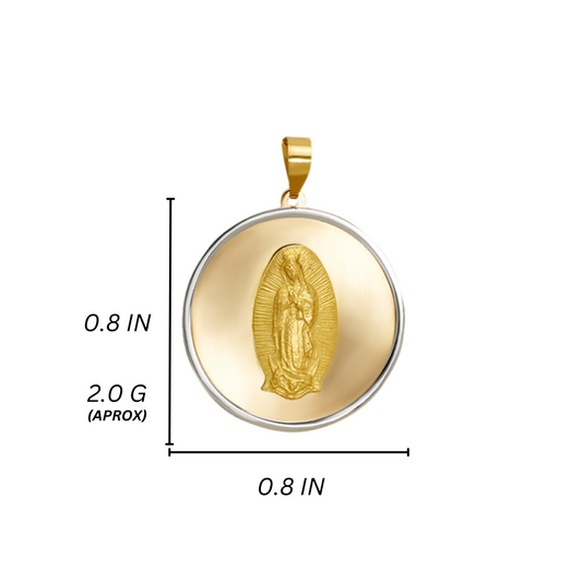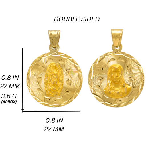 14K Gold Double Sided Jesus & Virgencita Round Pendant