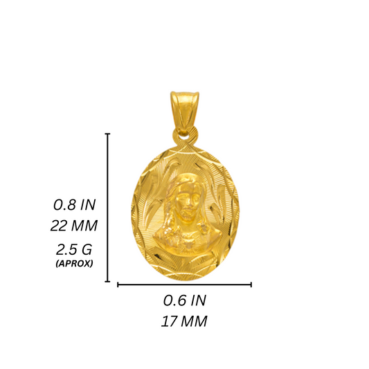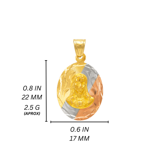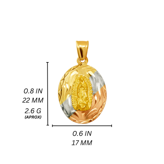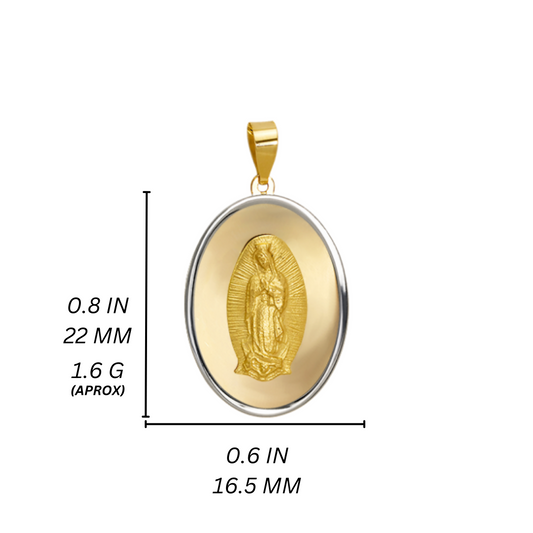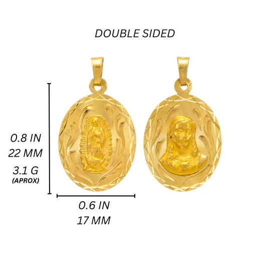 14K Gold Double Sided Jesus & Virgencita Oval Pendant