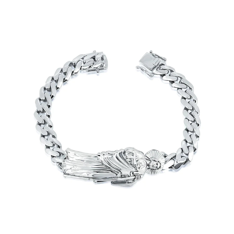 Elevate your accessory game with our San Judas Bracelet. This exquisite bracelet is meticulously crafted from pure 925 silver with intricate details. It adds a touch of elegance to your wrist, making it a perfect representation of your faith and devotion. Embrace timeless style with this graceful statement piece today.