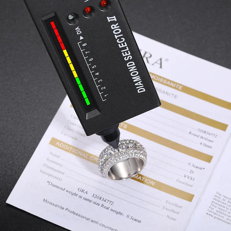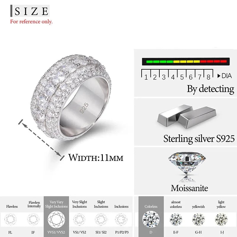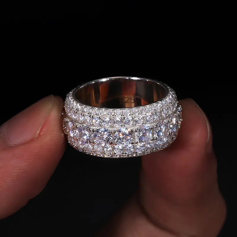 Elevate your jewelry game with our 5 Row Ring. Expertly crafted from premium Italian silver and featuring top-quality VVS clarity moissanite stones, this ring offers an unrivaled level of shine and brilliance. Each stone is guaranteed to pass nearly all hand held diamond testers, giving you the confidence to wear it anywhere. And the best part? You can get the same luxurious look as natural diamond rings that cost thousands of dollars more. Order now and experience the ultimate statement piece.